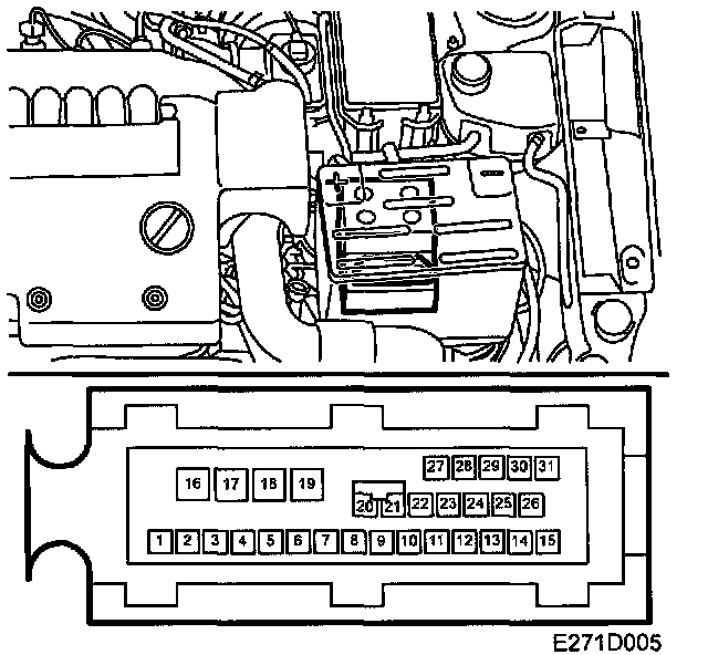 Always ground yourself, e.g. on the engine block, before touching the control module and avoid touching the terminal pins.