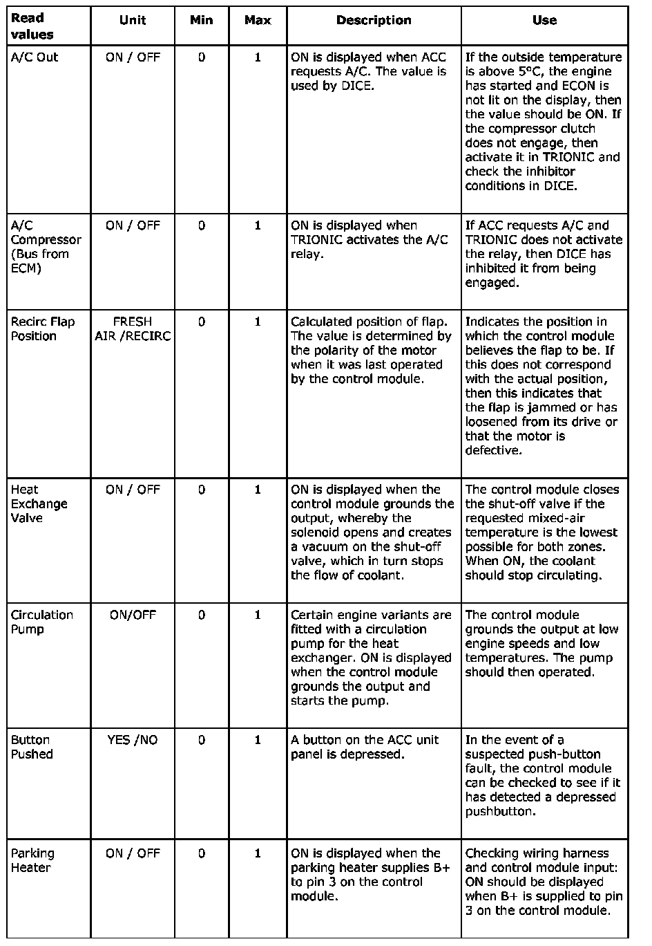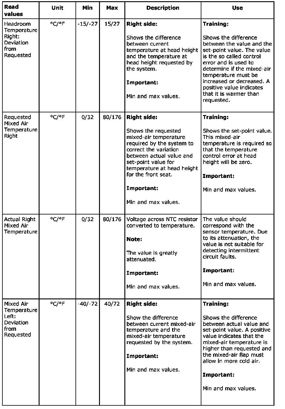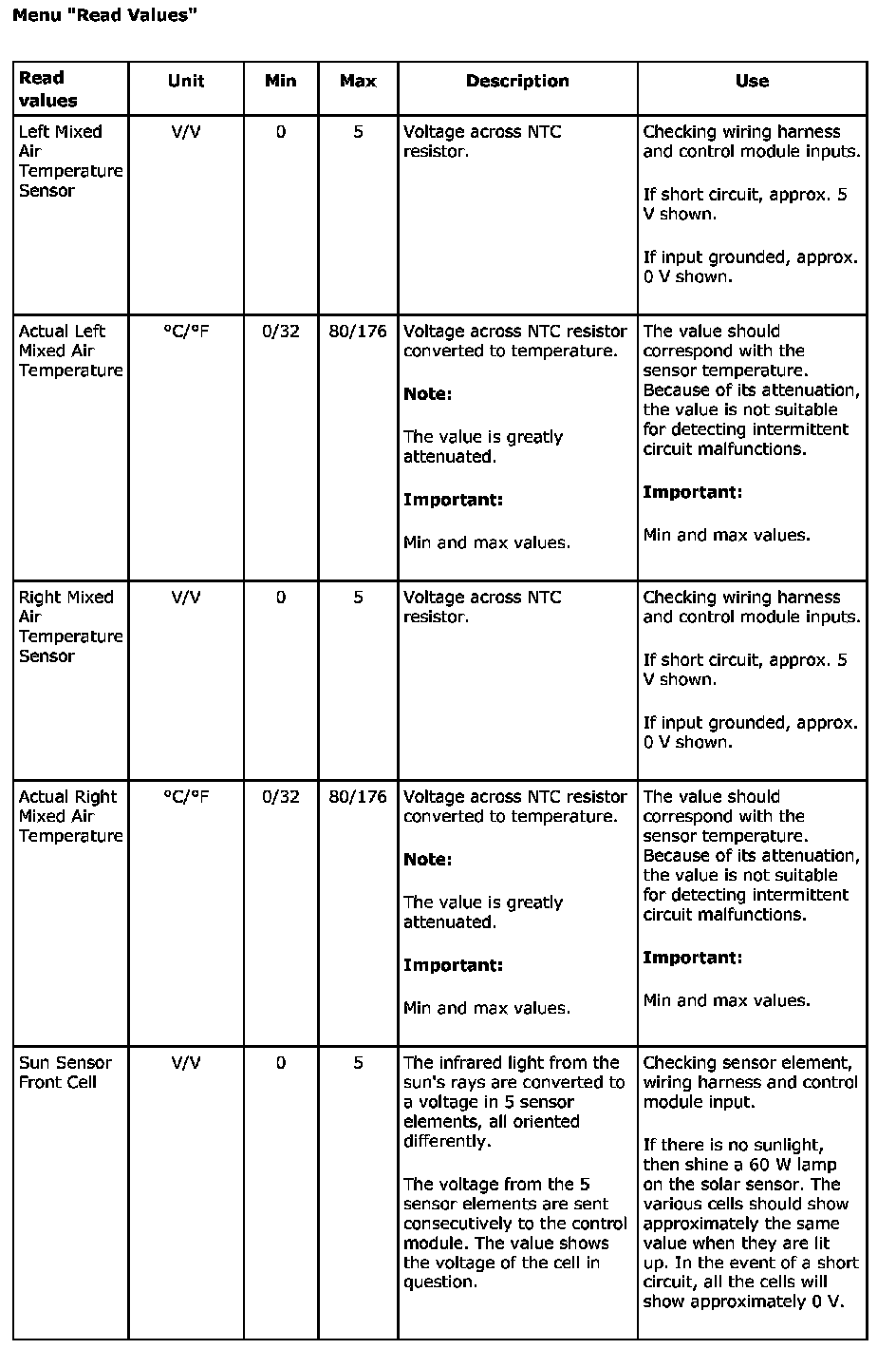 Menu "Read Values"