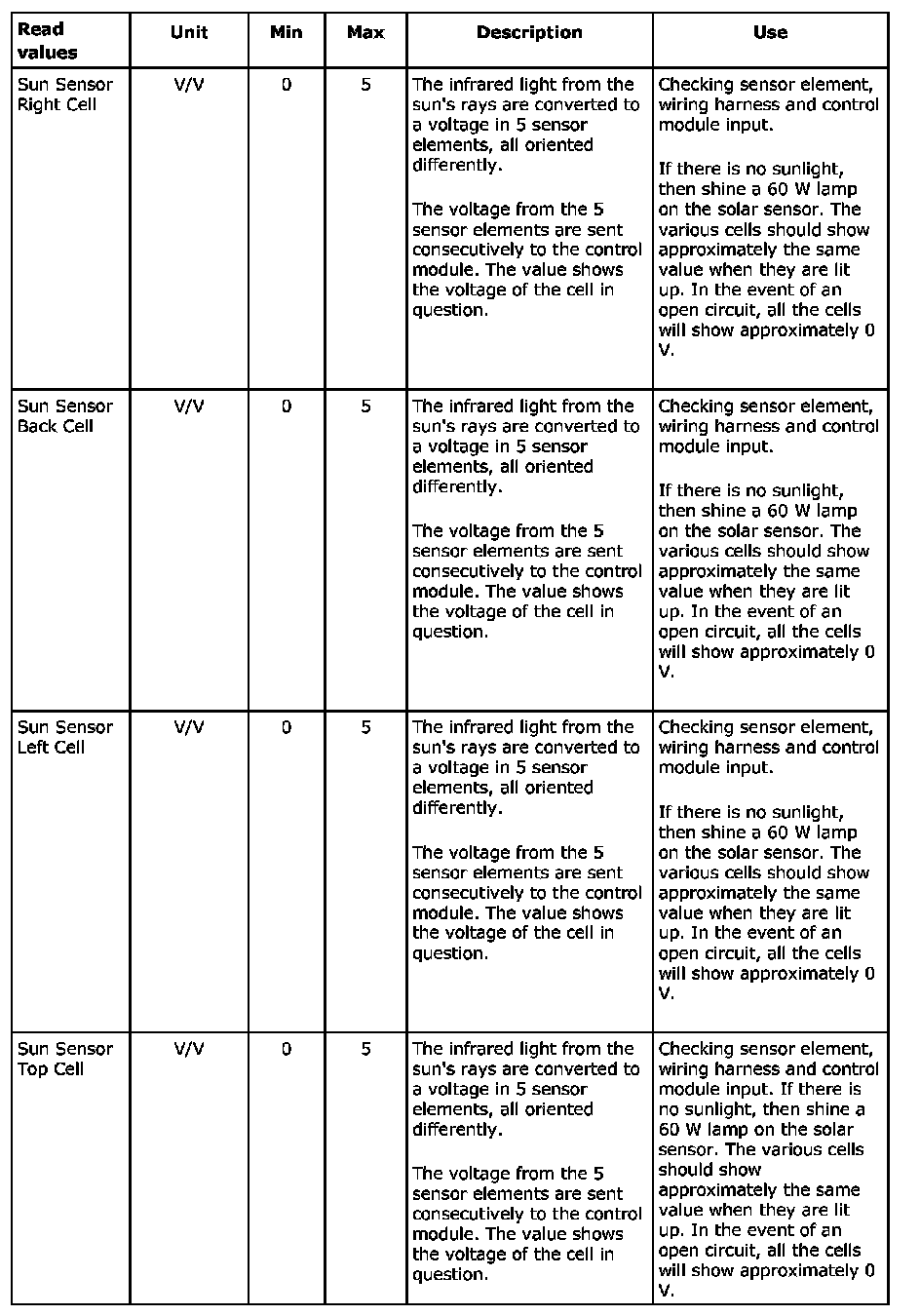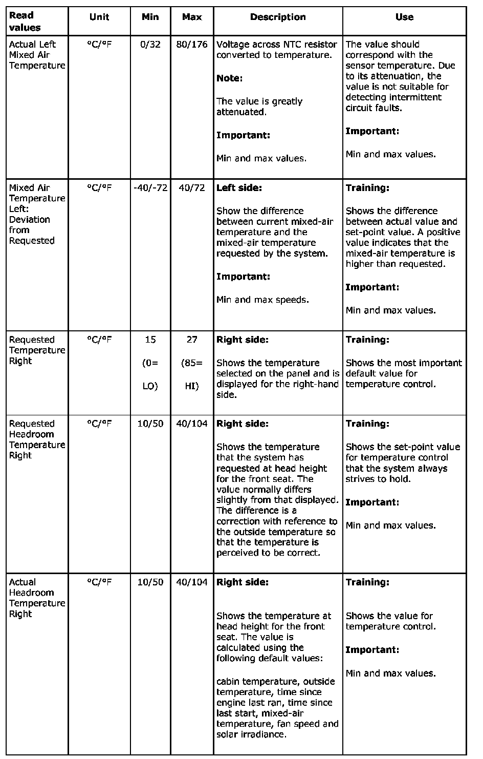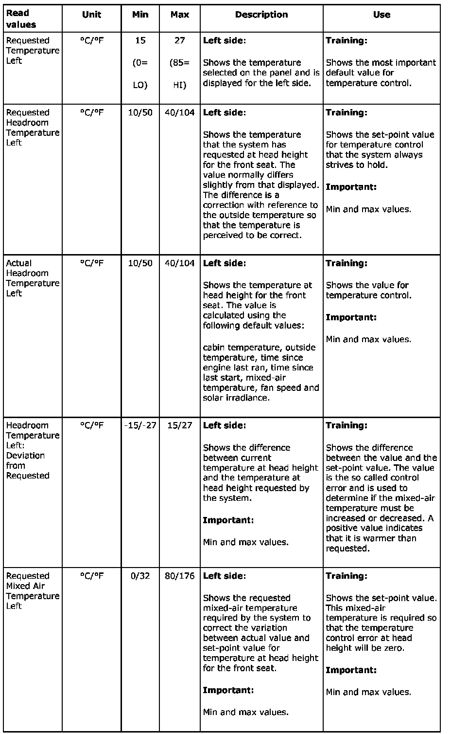 Menu "Read Values"