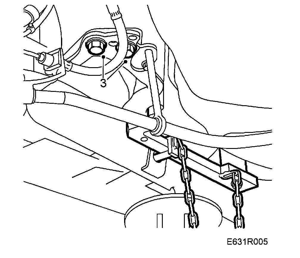 3. Slacken the bolts on the body attachment bracket for one of the longitudinal links.