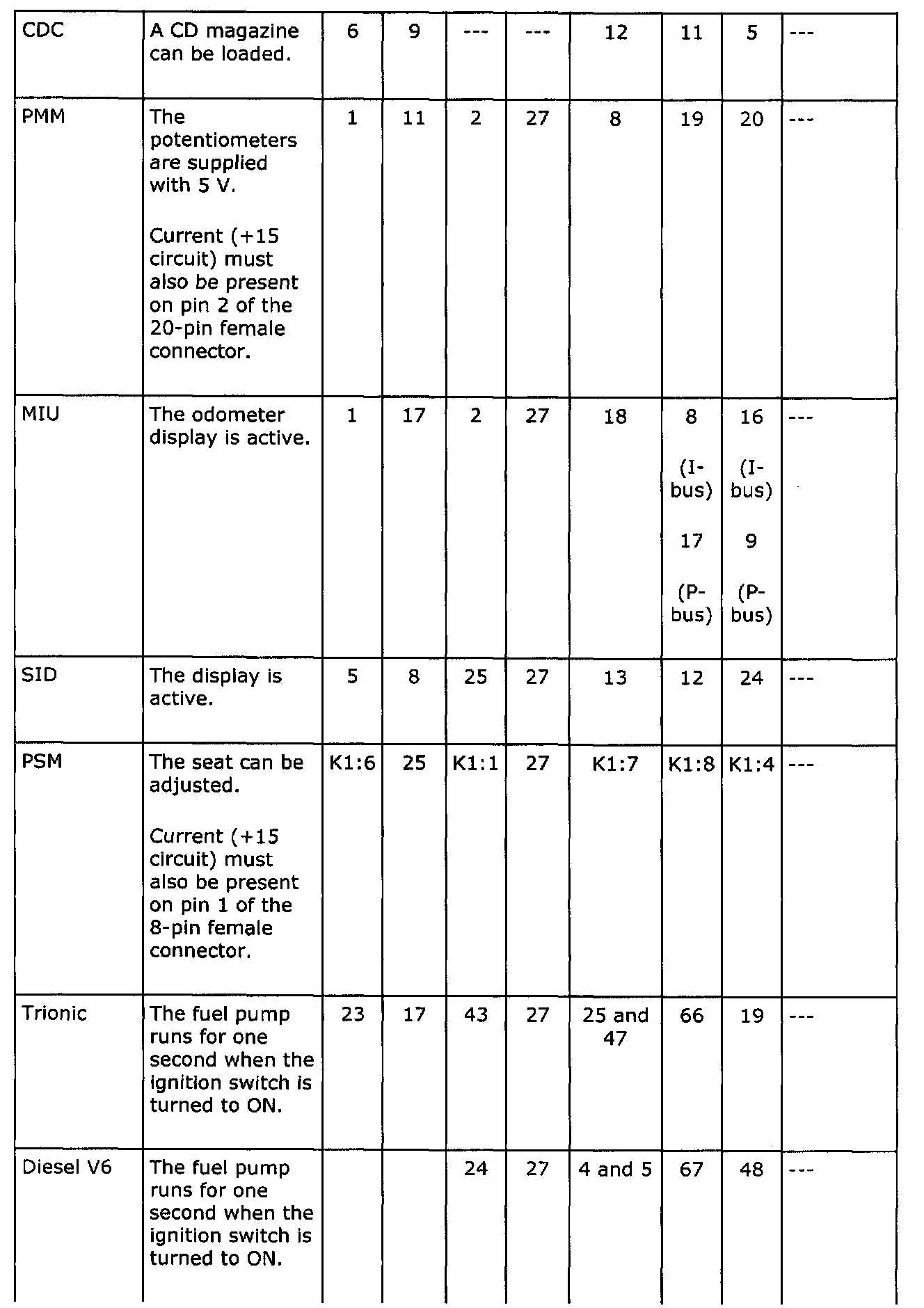 If the control module is not operative, check whether it is supplied with current and grounded (columns C-E).