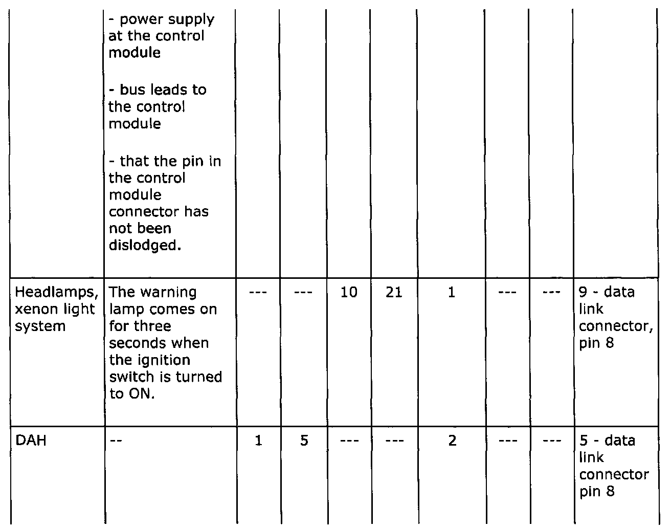 Then check whether the control module is connected to the bus (column F) or the data link connector (column G).