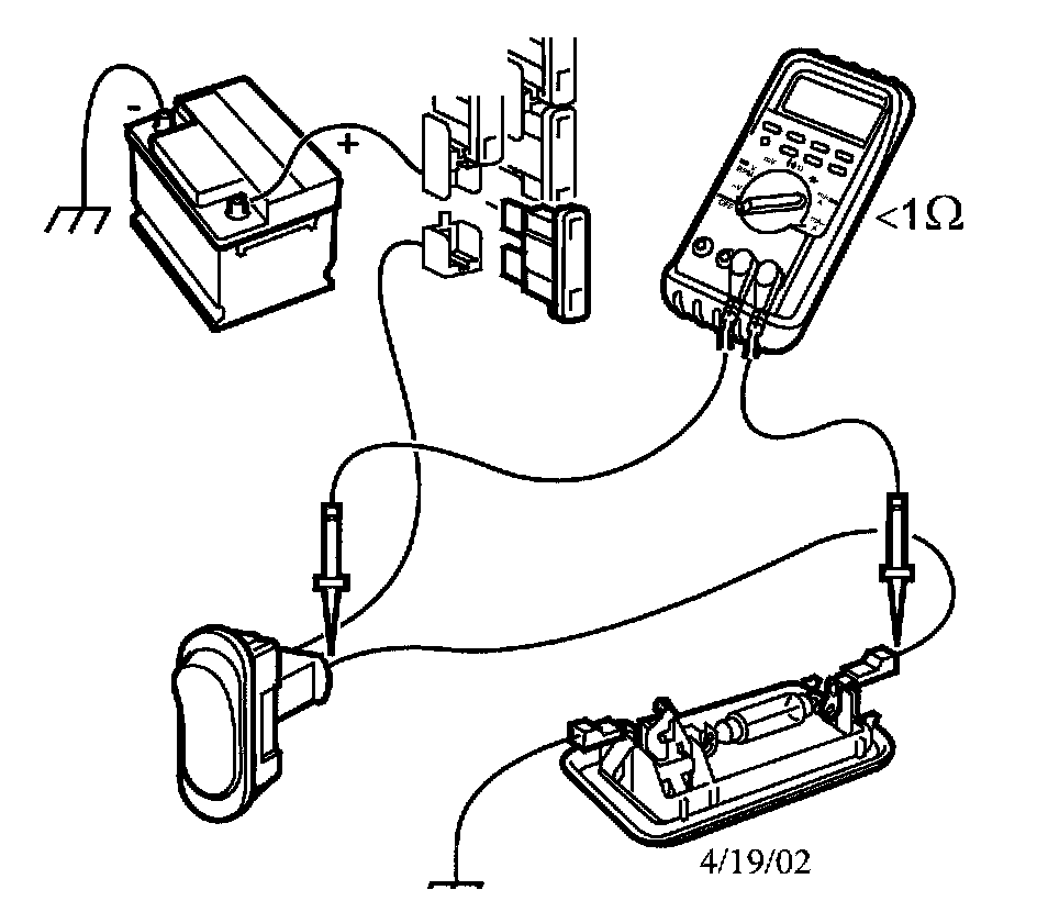 2. Set the multimeter to ohm measurement and connect the instrument to each end of the component/lead to be checked.