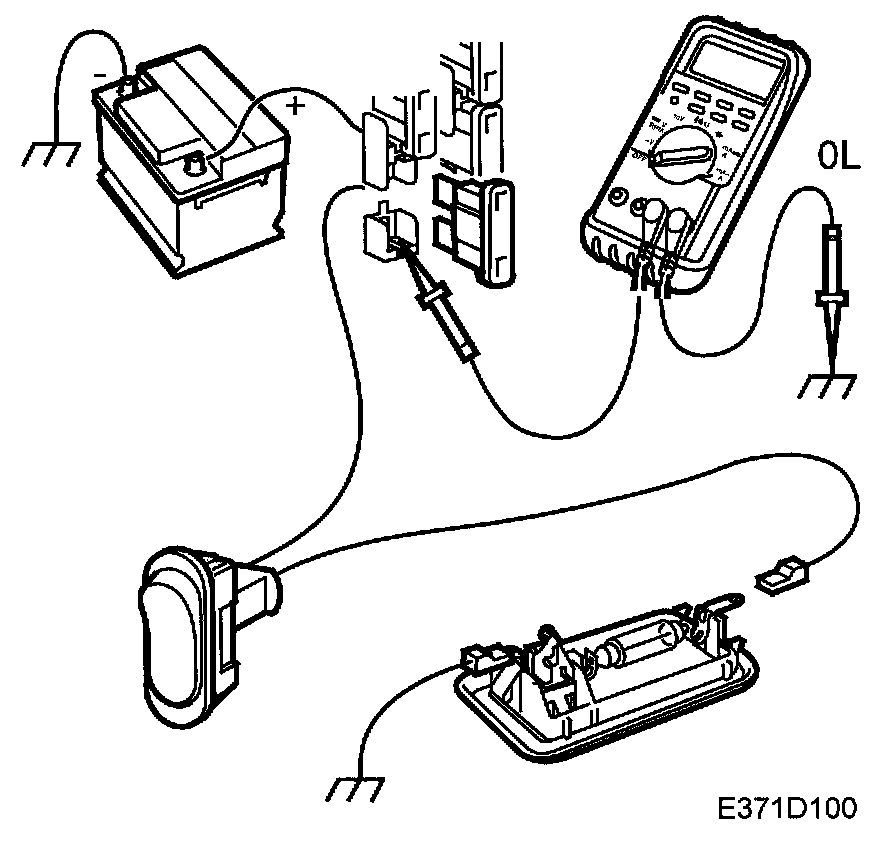 4. Carefully jiggle the wiring harness and check that the multimeter shows a constant infinite value (OL).