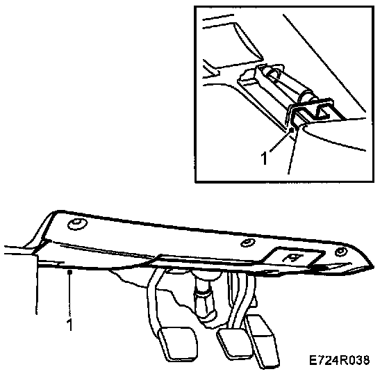 1. Remove the pedal bracket cover by undoing the 3 screws. Tilt down the cover and carefully pull it out. Pay attention to the cable for the diagnostic tool data link connector and the lighting.