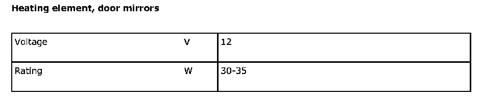 Heating Element, Door Mirrors: