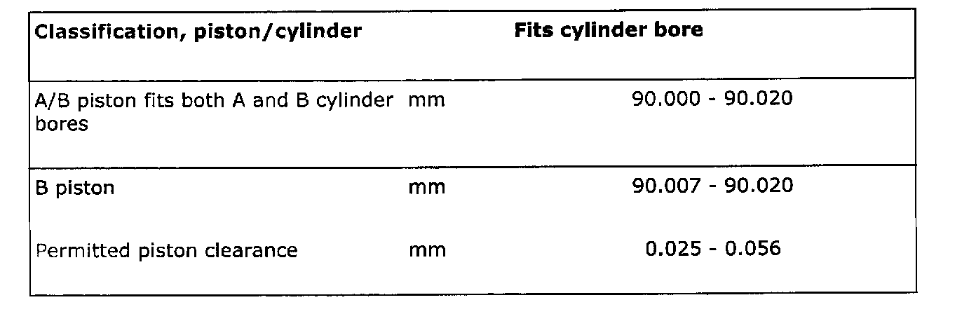 The piston classification is stamped on the piston crown roof. The piston classes for service are B