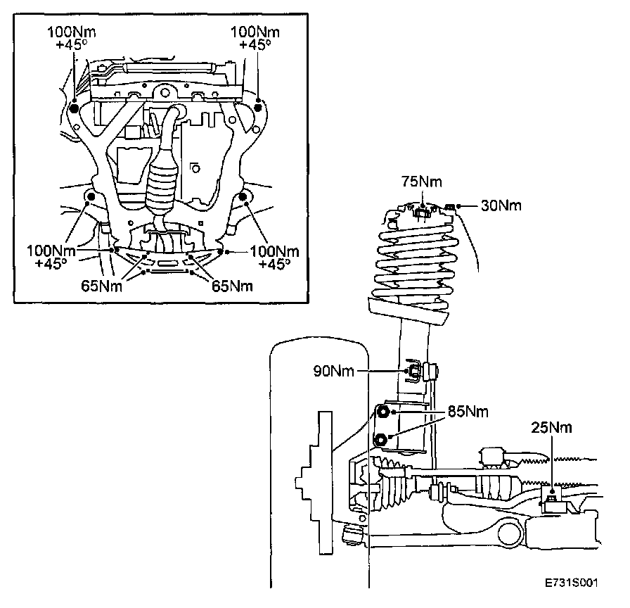 Subframe Mounting To Body 100 Nm (75 Ft. Lbs.) + 45°
