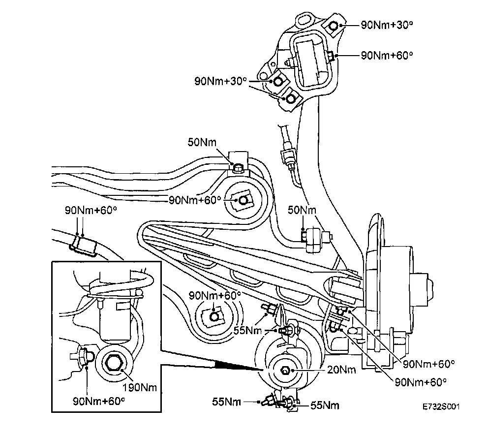 Anti-Roll Bar To Subframe 50 Nm (40 ft. lbs.)