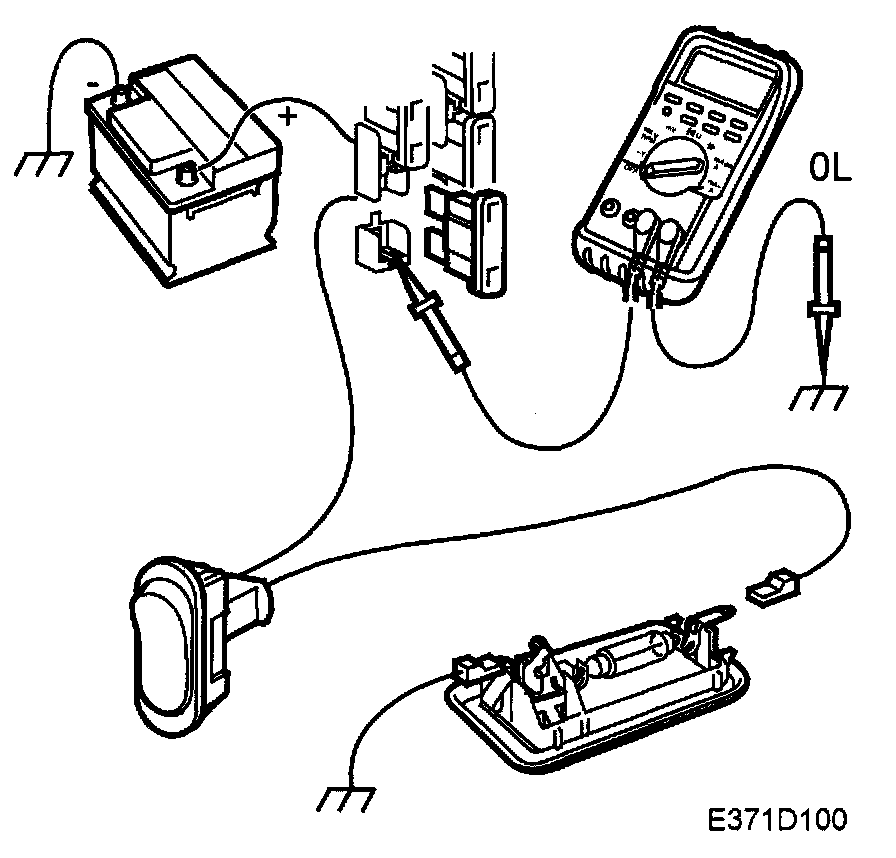 4. Carefully jiggle the wiring harness and check that the multimeter shows a constant infinite value (OL).