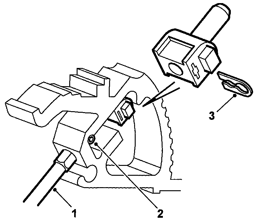 5. Insert the spacer sleeve through the selector lever, ignition switch retaining catch, shift-lock retaining catch and holder. Fit the lock washer.