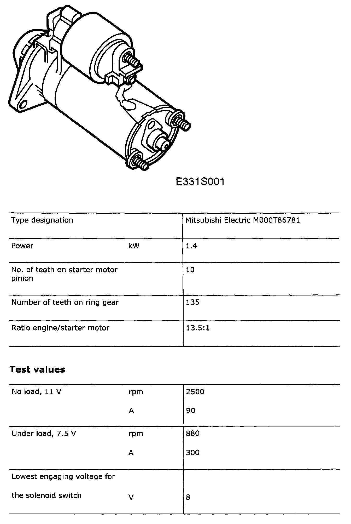 Starter Motor: Specifications