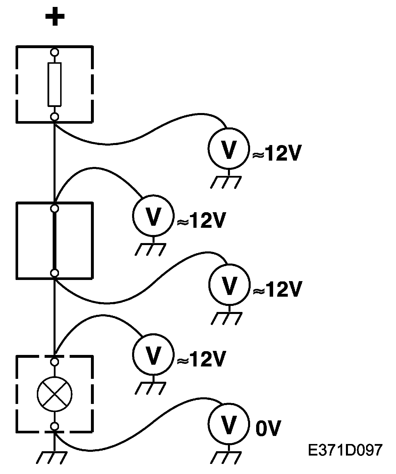 3. Connect one test lead to a good ground and the other to the point to be tested.