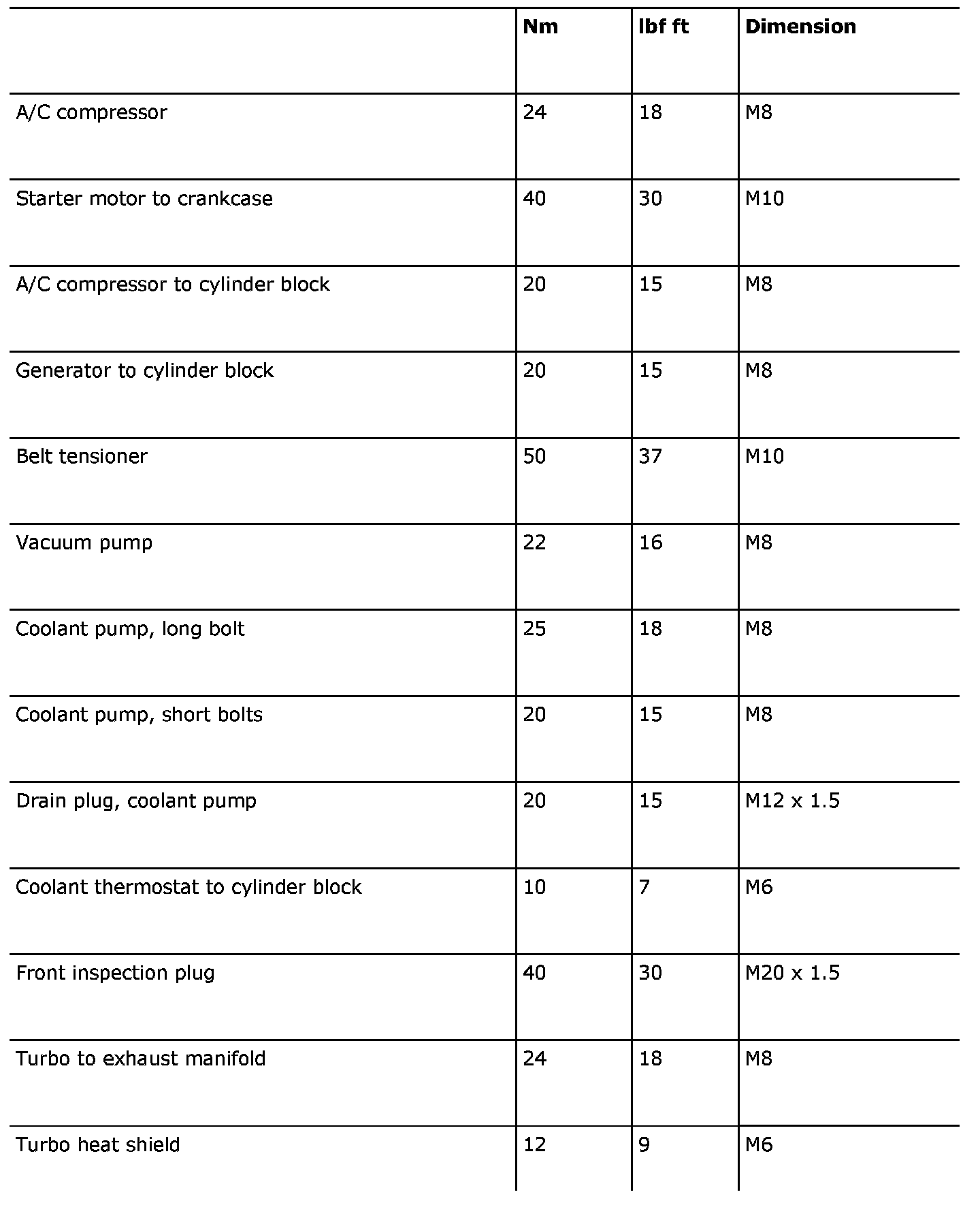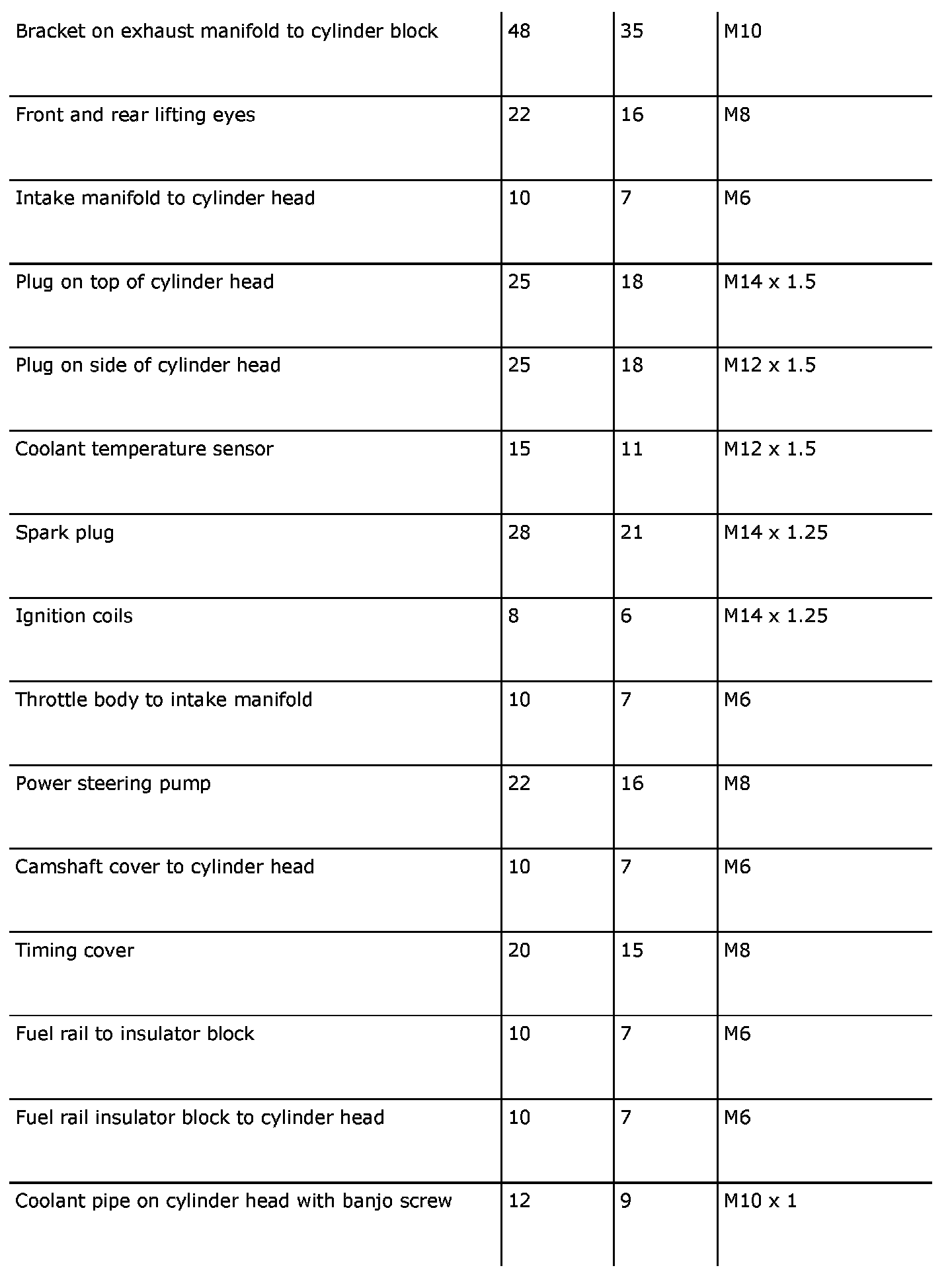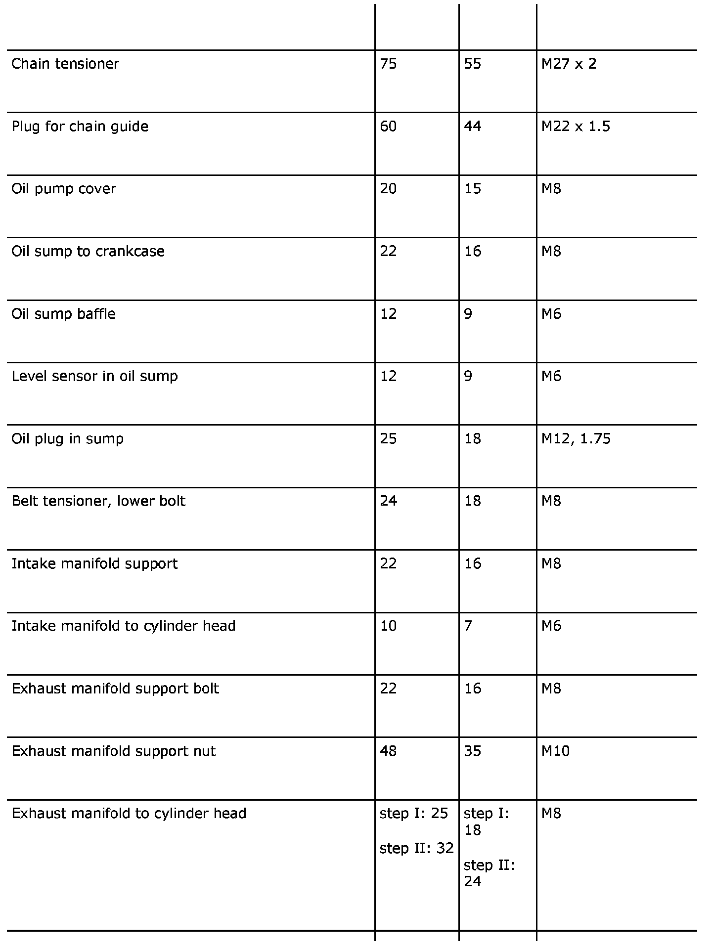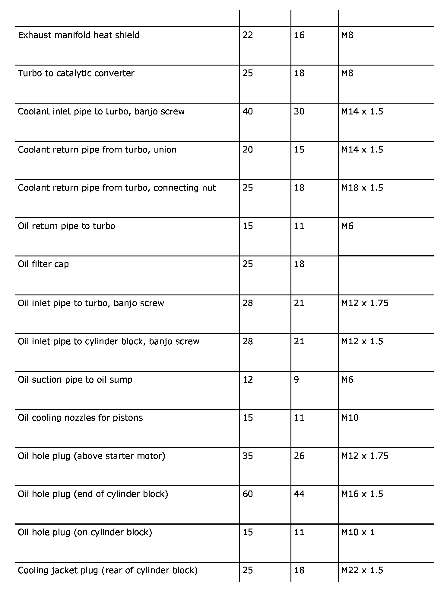 22 Nm (16 ft. lbs.) M8