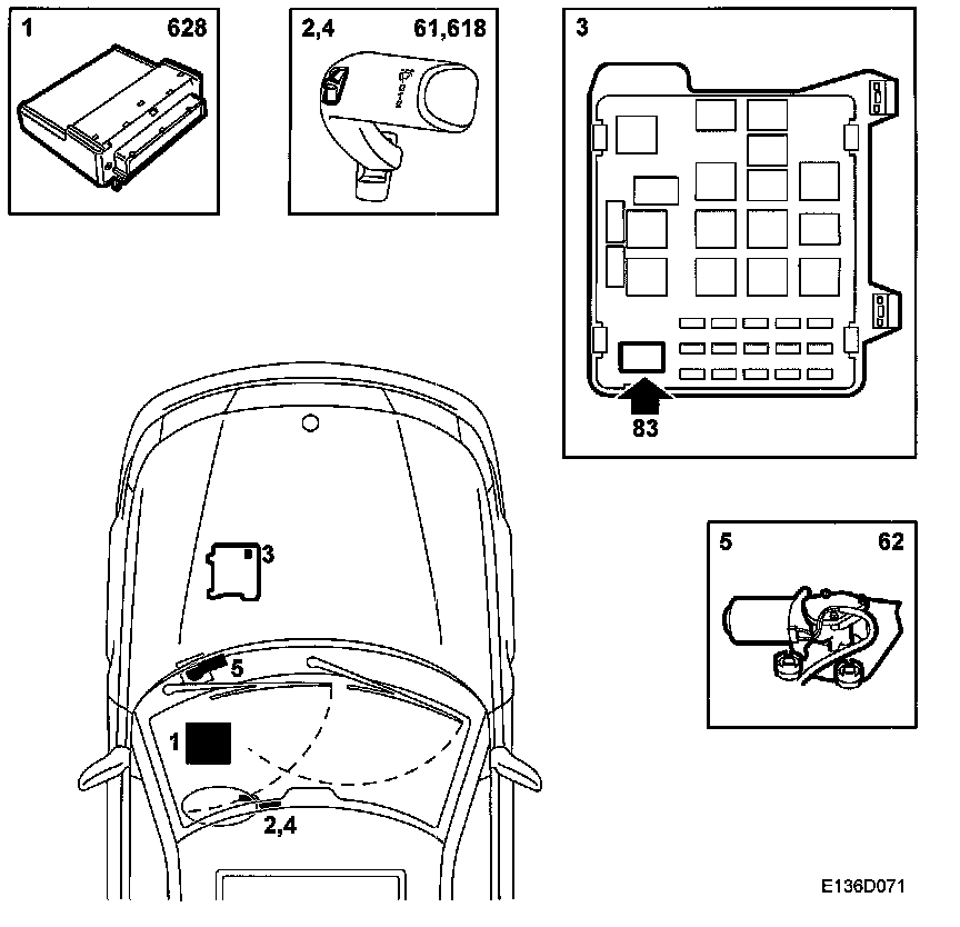 5. Windscreen wiper motor (62F)