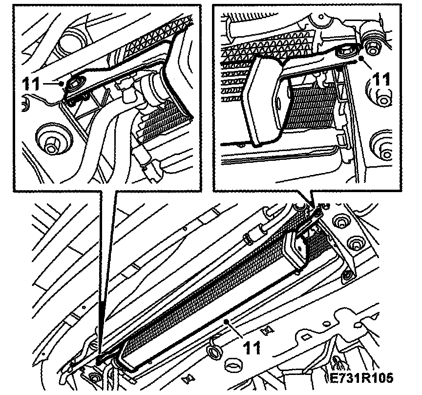11. R4: Undo the engine oil cooler and allow it to hang from the hoses.