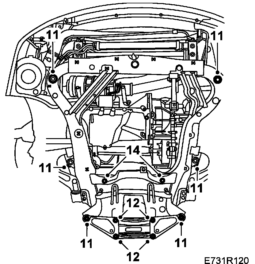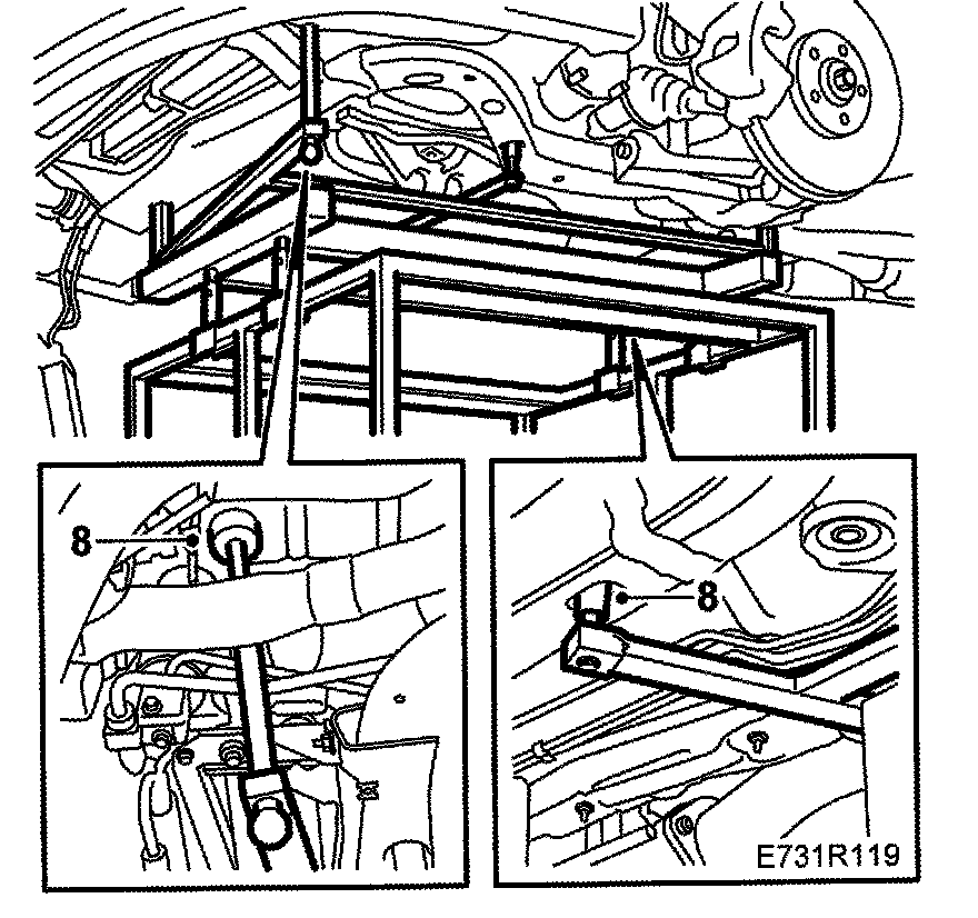 Subframe, petrol enginesThis method is used when the same subframe is to be refitted.