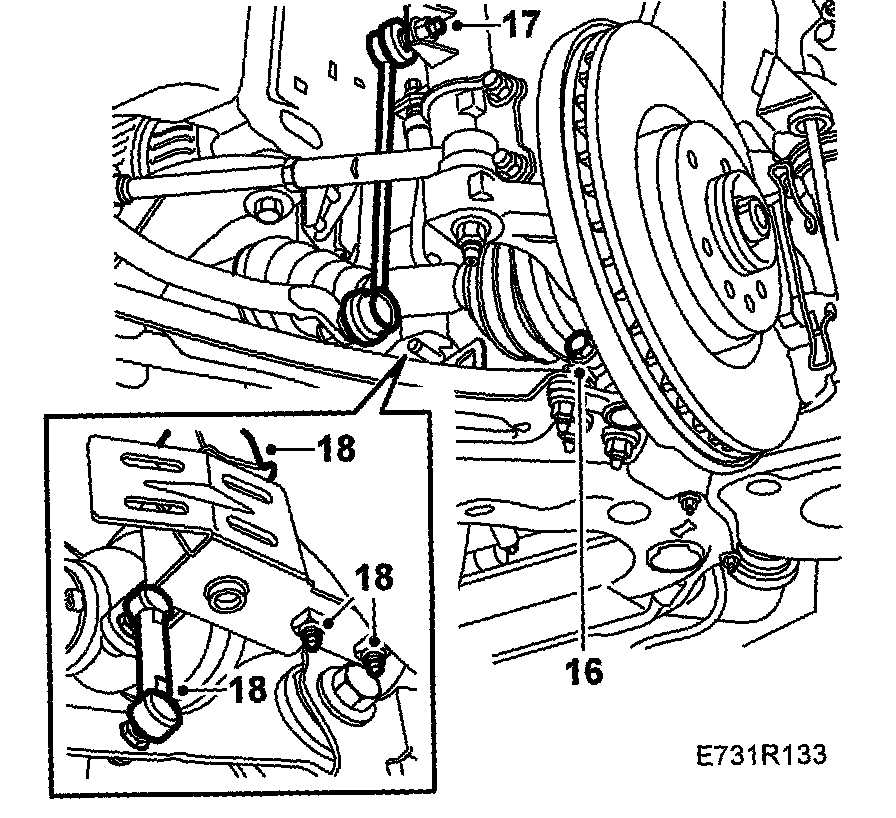 17. Fit the anti-roll bar support to the MacPherson strut.