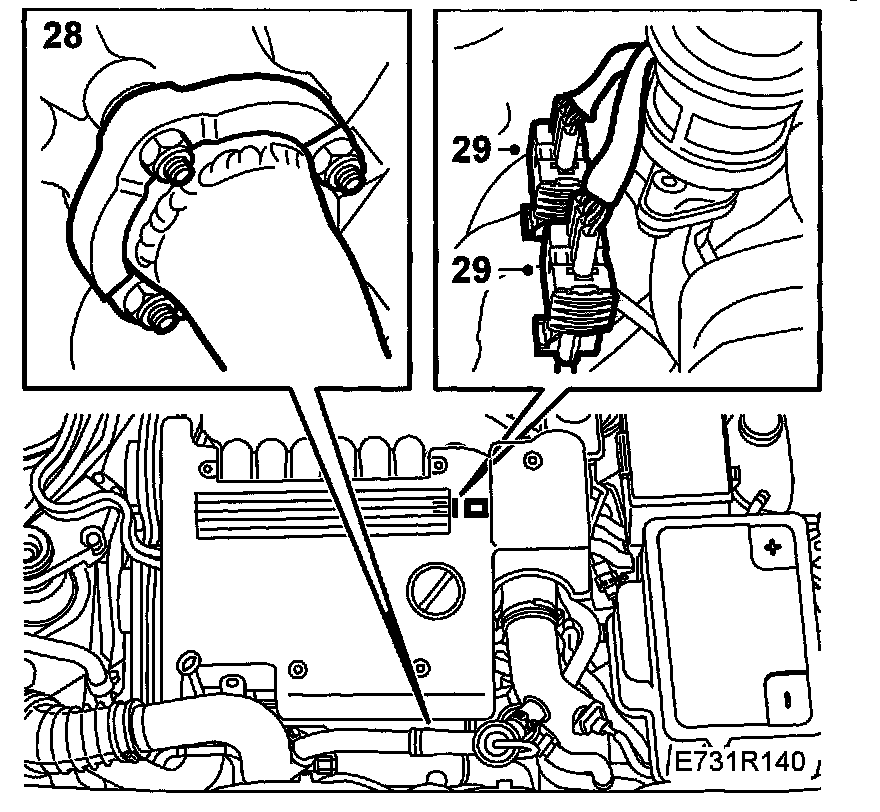 29. Plug in the front heated oxygen sensor's connector and that of the rear heated oxygen sensor, if fitted, and secure the cable at suitable places.