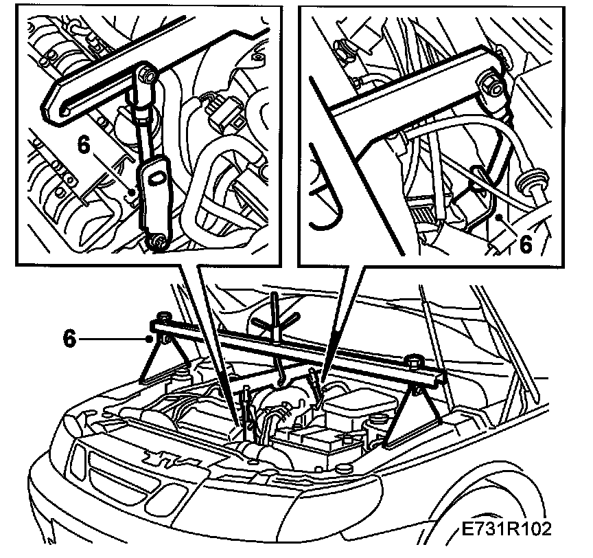 6. V6: Fit lifting eyes, one on the back of the cylinder head and one on the front (after first unscrewing the existing bolt). Fit 83 95 287 Holder.