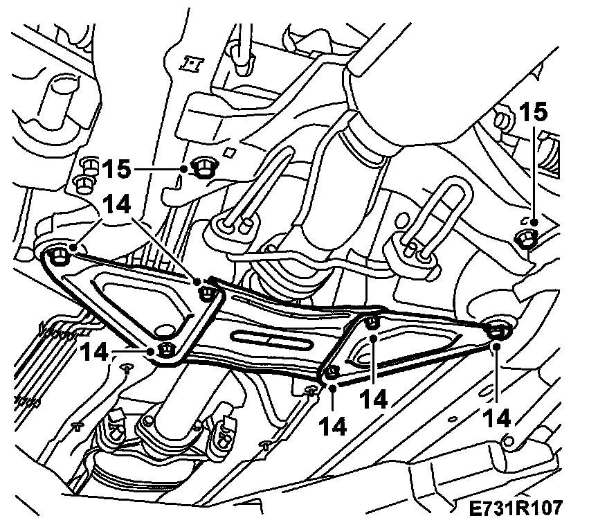 27. Tighten the bolts securing the gearbox torque arm to the subframe.