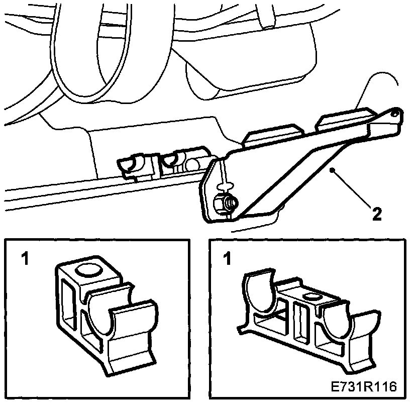 15. Bolt the power steering fluid pipe's rear clamp and front bracket to the subframe and tighten the bolts. The rear clamp must be fitted in such a way that the pipe is located as far away from the drive shaft as possible.