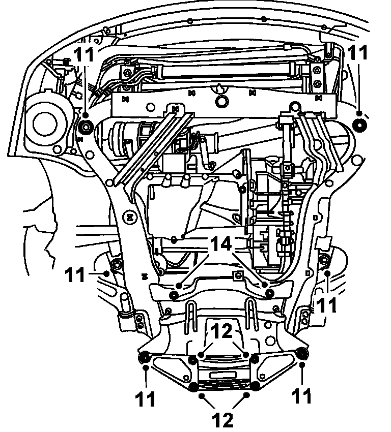 Subframe, petrol engines, changeThis method is used when replacing the subframe with a new one.