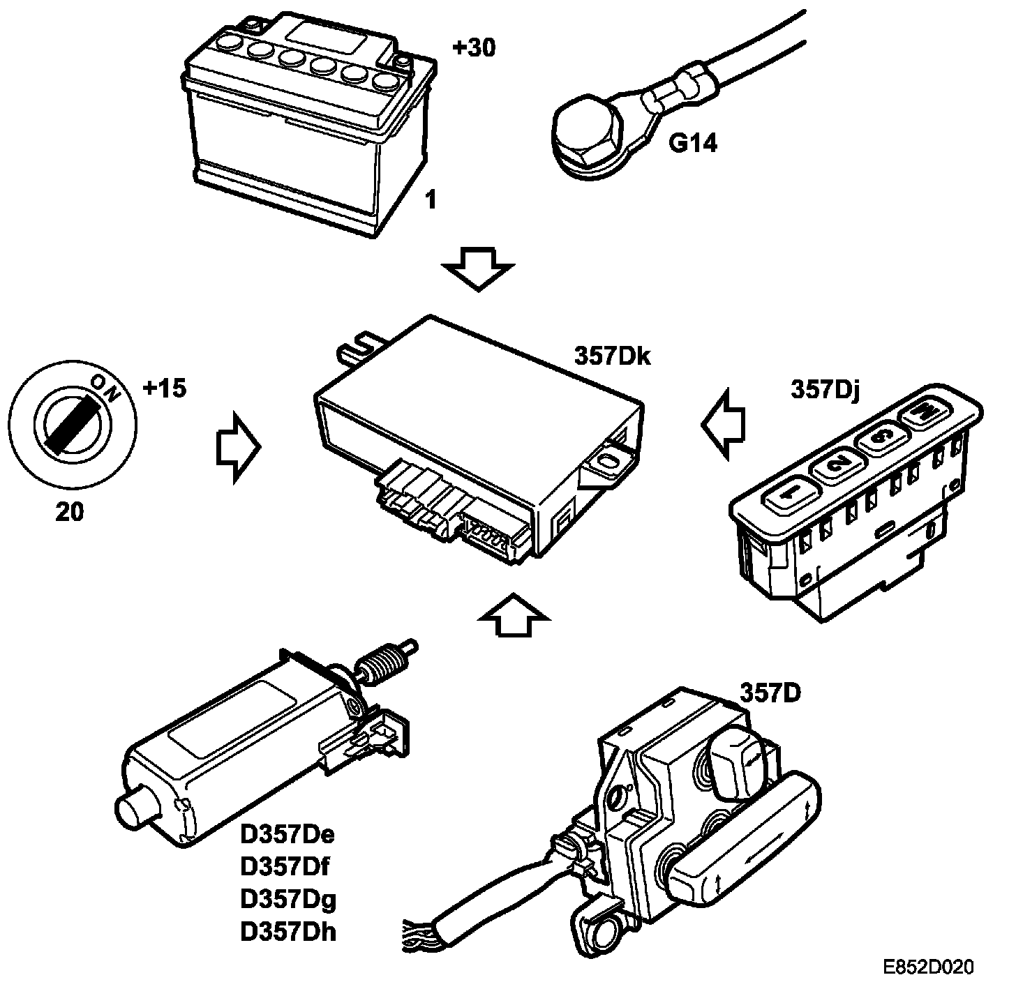 Hall sensor (357De-Dh), seat adjustment.