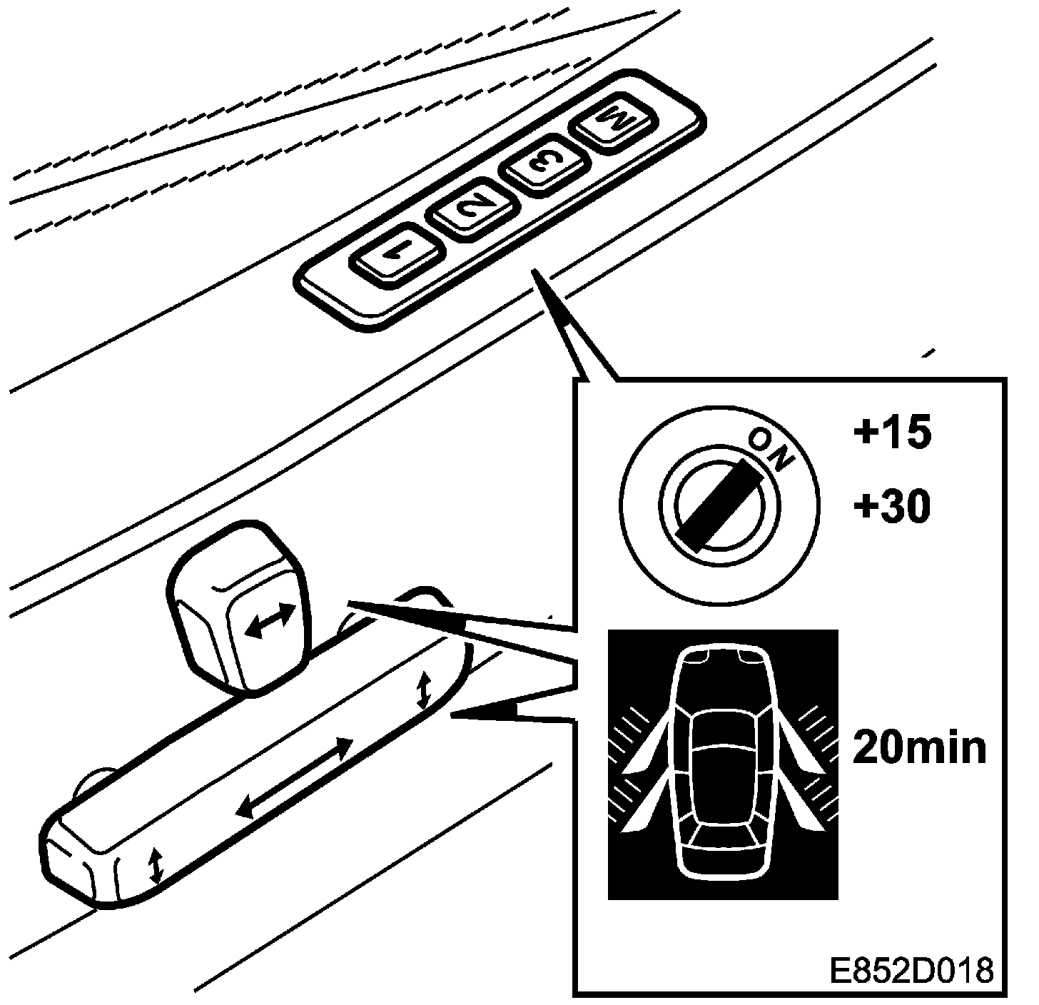 When the ignition is OFF and one of the front doors is open, the seat can be adjusted for 20 minutes. If the door is closed and then opened again, a further period of 20 minutes begins.