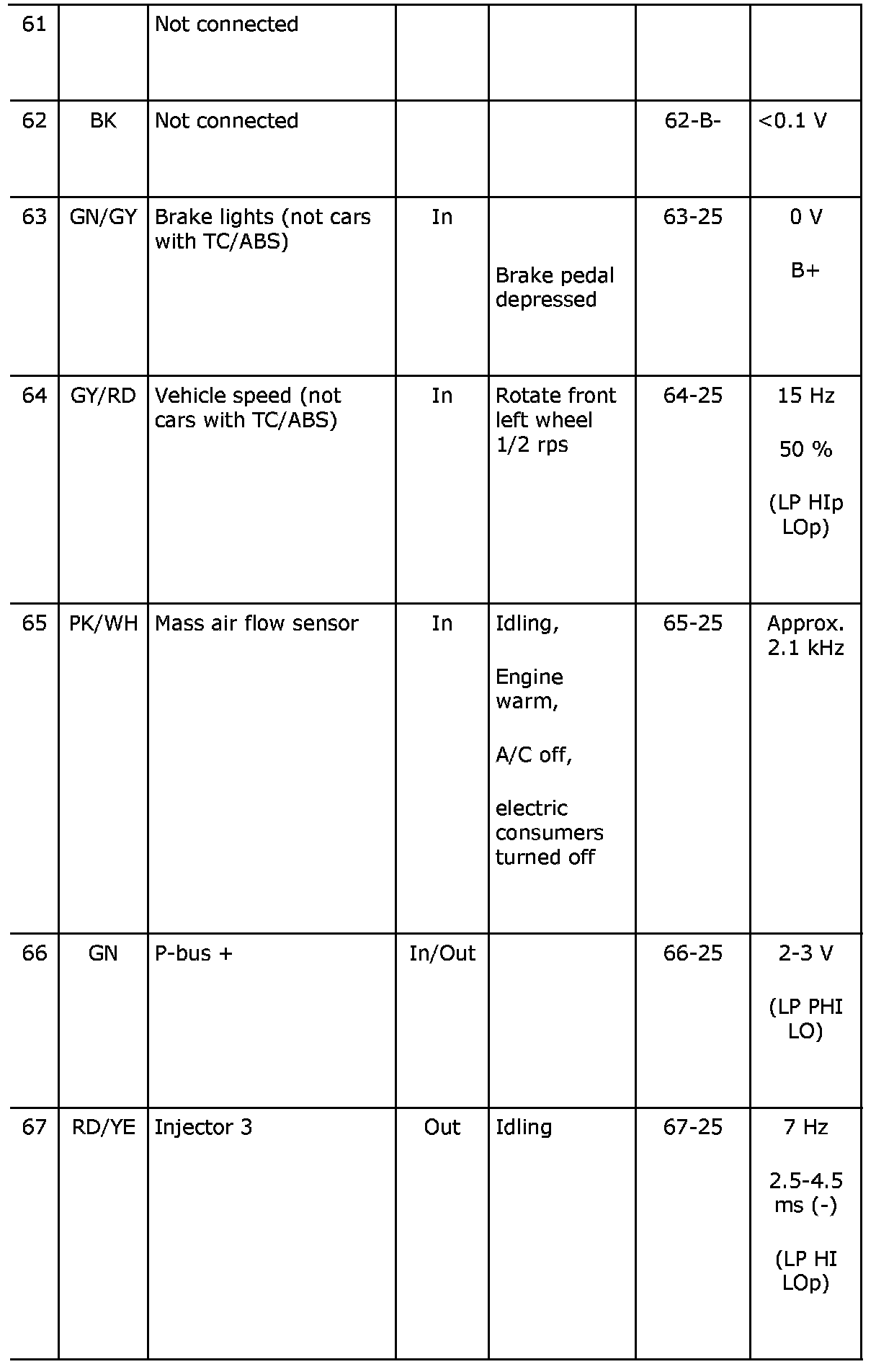 Pin No. 61-67: