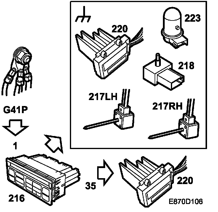 If the sensor ground is shorted to 5 V or B+, diagnostic trouble code B2945 is generated and 23 is displayed instead of right-hand temperature when calibrating.
