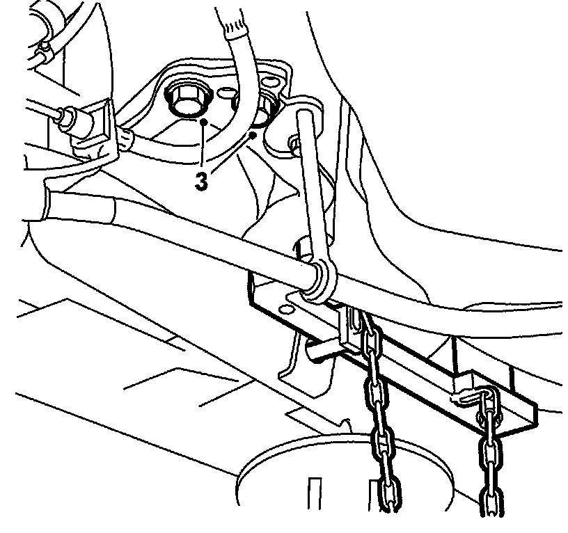 3. Slacken the bolts on the body attachment bracket for one of the longitudinal links.