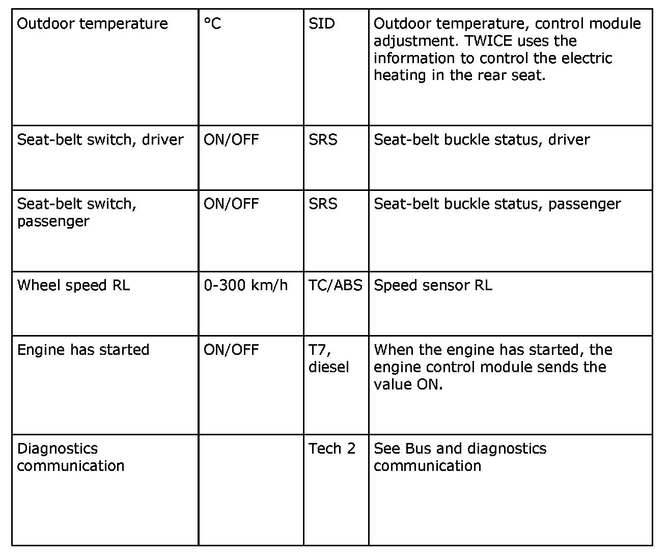 For a further description of the car's bus system, see System overview, bus and diagnostics communication, petrol.