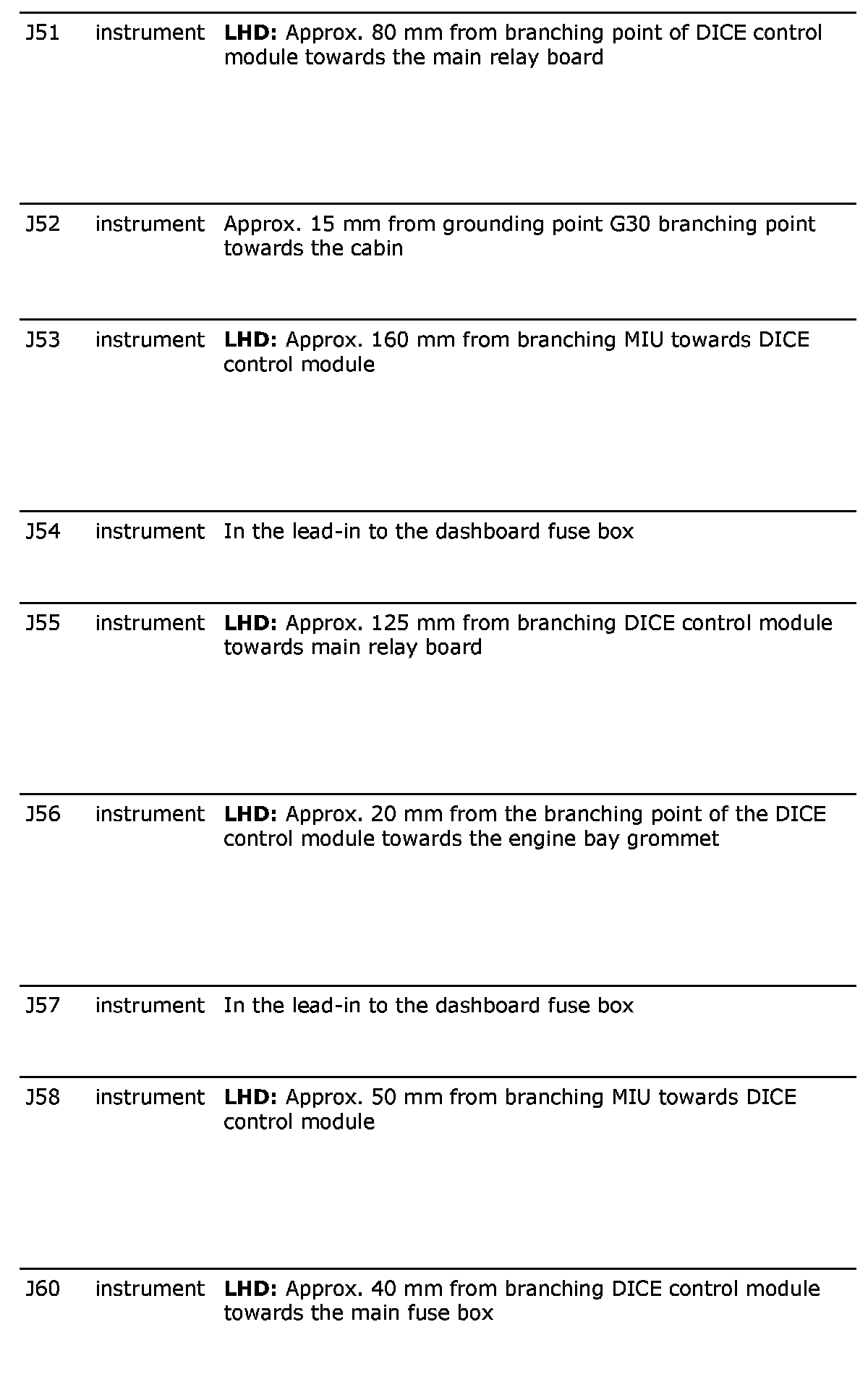 Crimp Connection J60, Instrument Harness