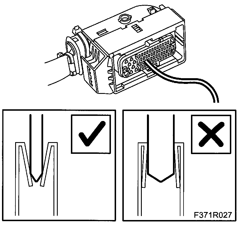- Use a test cable (part no. 86 12 731) of the correct size to avoid damaging the sleeves in the connector.