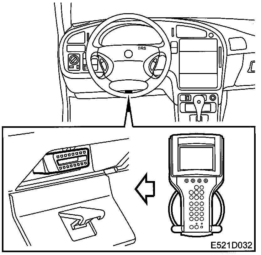 - Connect the Tech 2 diagnostic tool to the data link connector under the steering wheel.