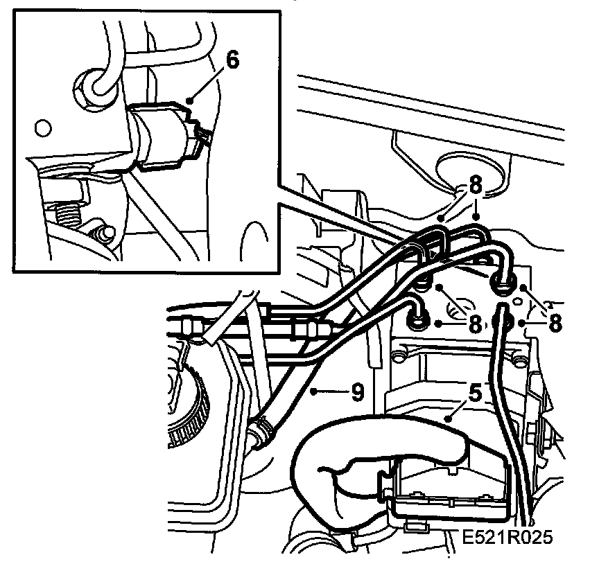 Note: Start with the rear brake pipes and tighten one union before starting with the next.