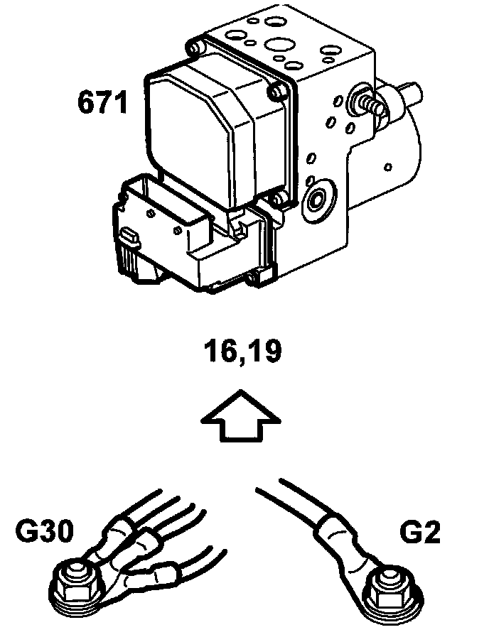 In the event of an open circuit on pin 19, the ESP, TCS and ABS functions will be disabled and the warning lamps for the ABS, foot brake, central warning lamp and ESP OFF switched on. Communication with the diagnostic tool is not possible.