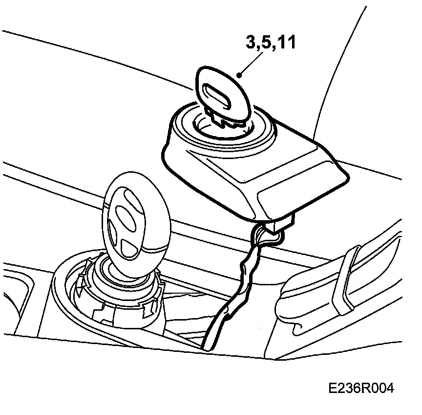 3. Hold the accompanying transponder over the hole in the antenna unit. Switch the ignition to the ON position. Hold the transponder in the same position for a few seconds.