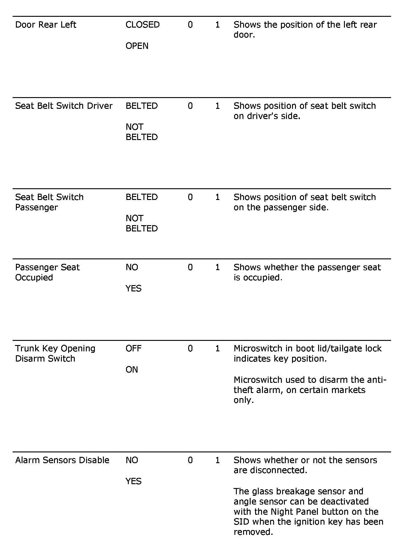 Menu Read Values