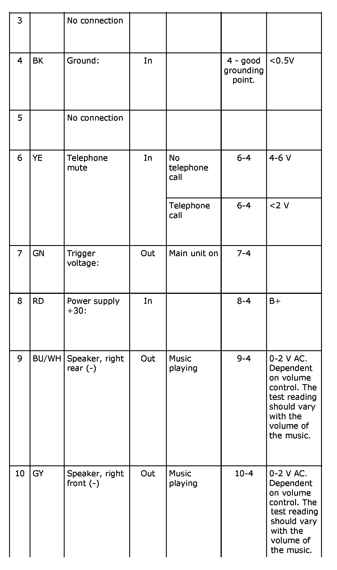 - If a test value is incorrect, consult the wiring diagram to trace which leads, connectors and components should be checked more thoroughly.