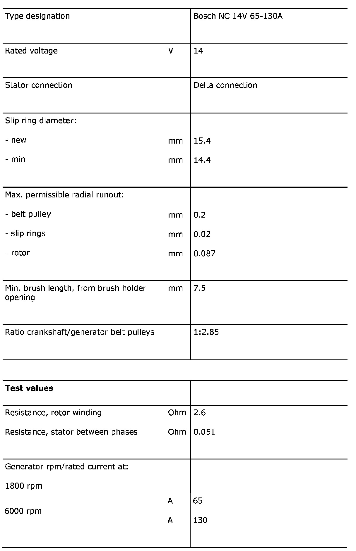 Generator 130A, 4-cyl Petrol