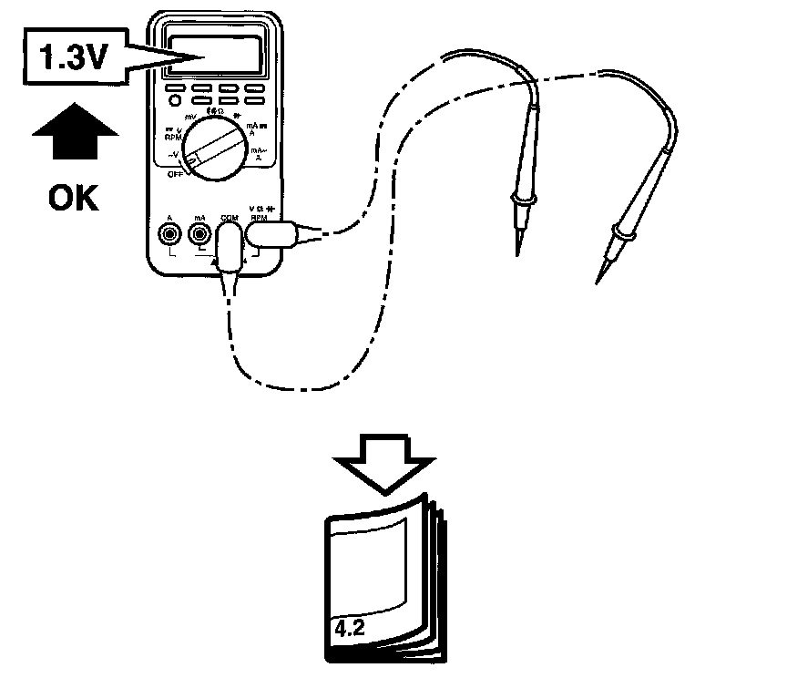 ^ If any reading is not OK, consult the wiring diagram to trace the leads, connectors or components which ought to be checked more thoroughly.