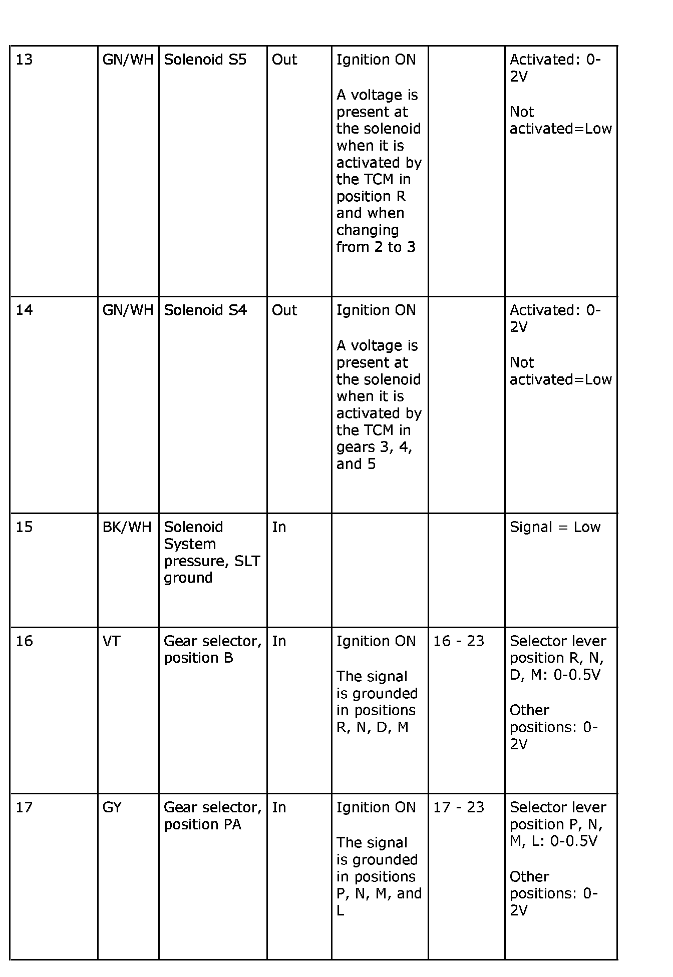 The following pages contain specified values and directions for measuring signals and levels on the automatic transmission control module.