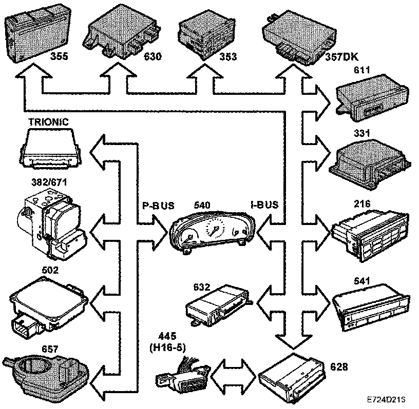 - Selector lever position, automatic transmission, bus from TCM (502)