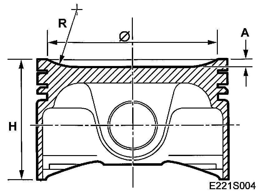 Piston diameter is measured at right angles to the gudgeon pin holes, 16 mm from the bottom of the piston.
