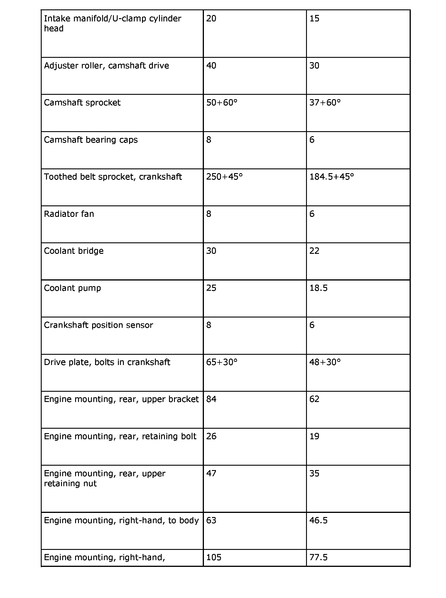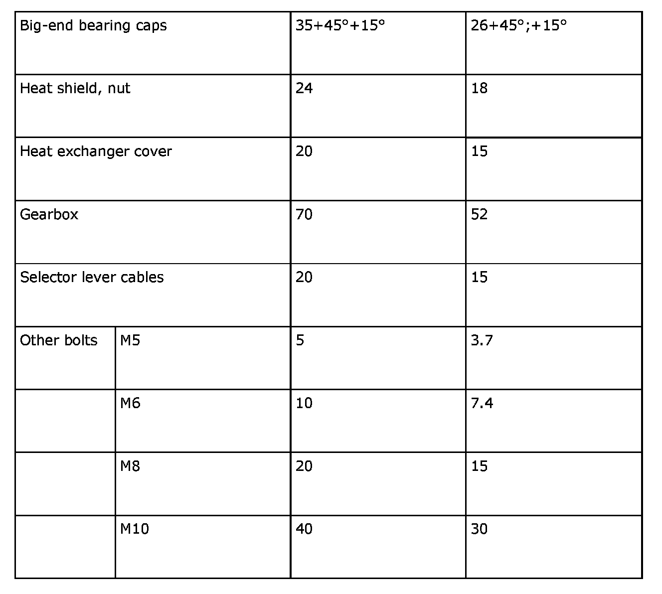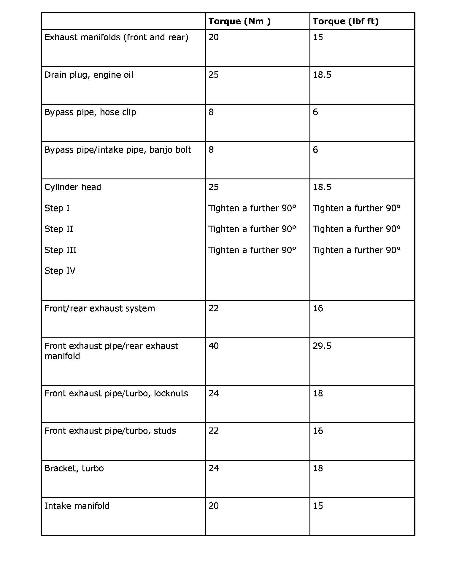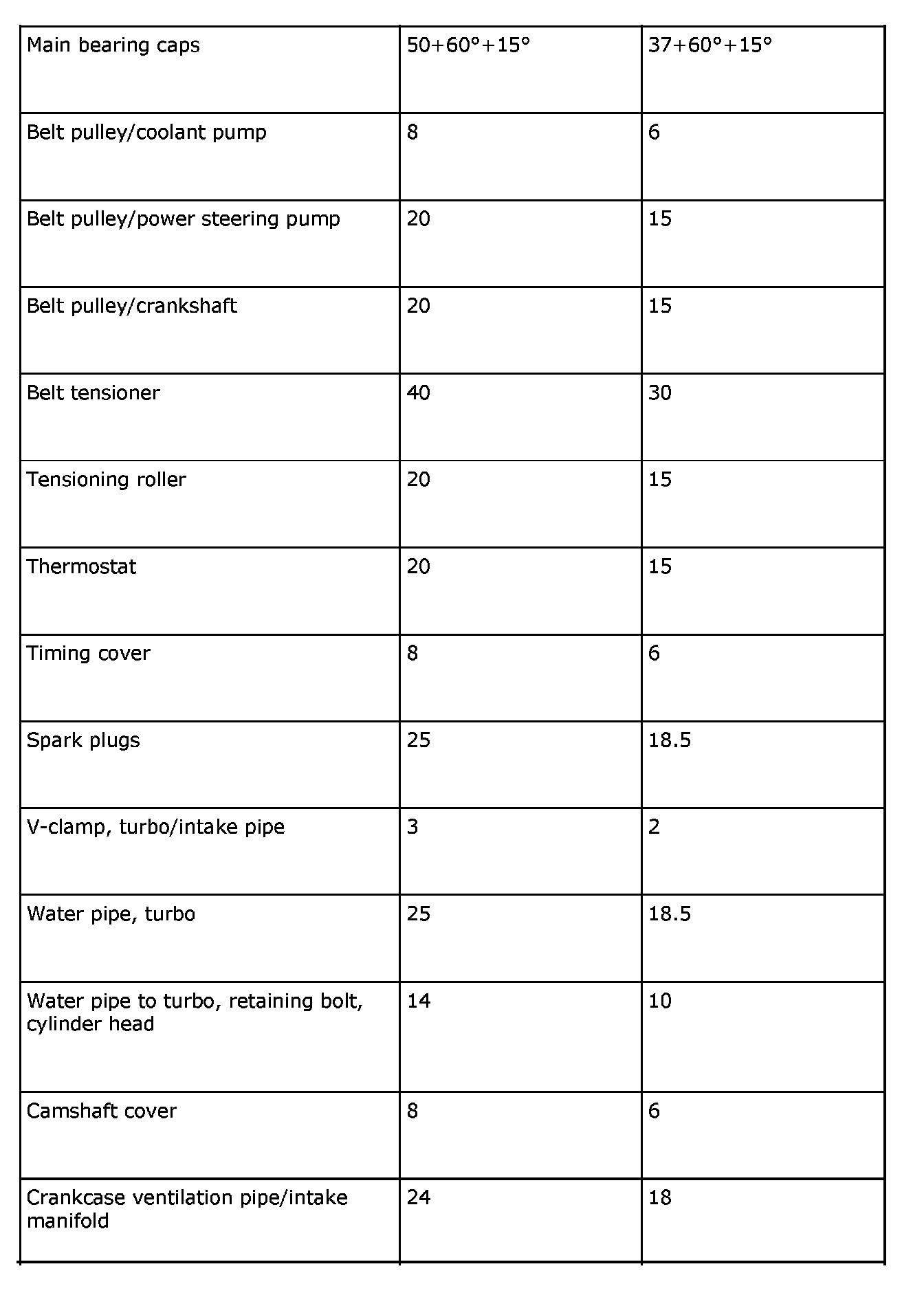 Tightening Torques