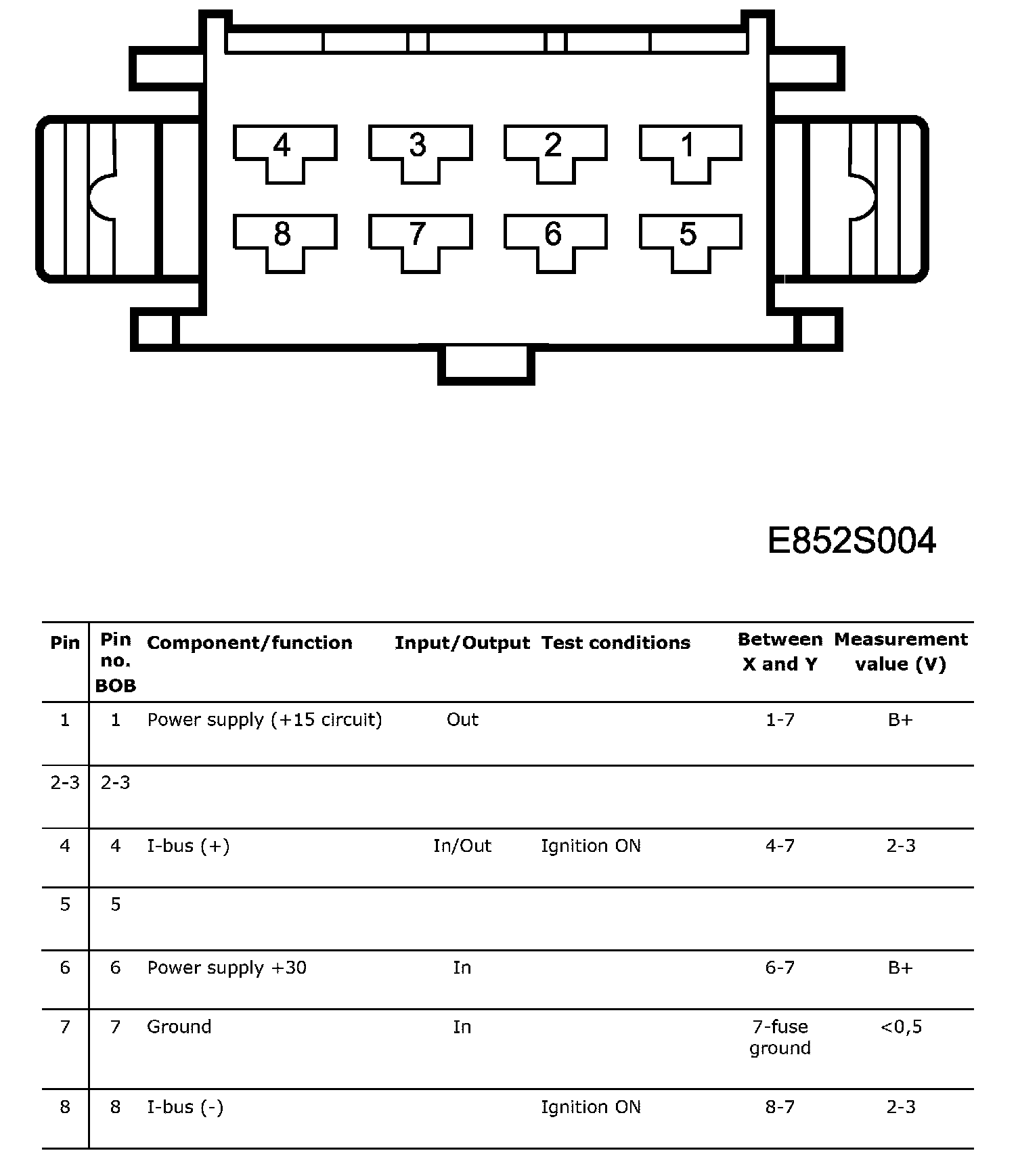 Connector 3 (K3), test readings