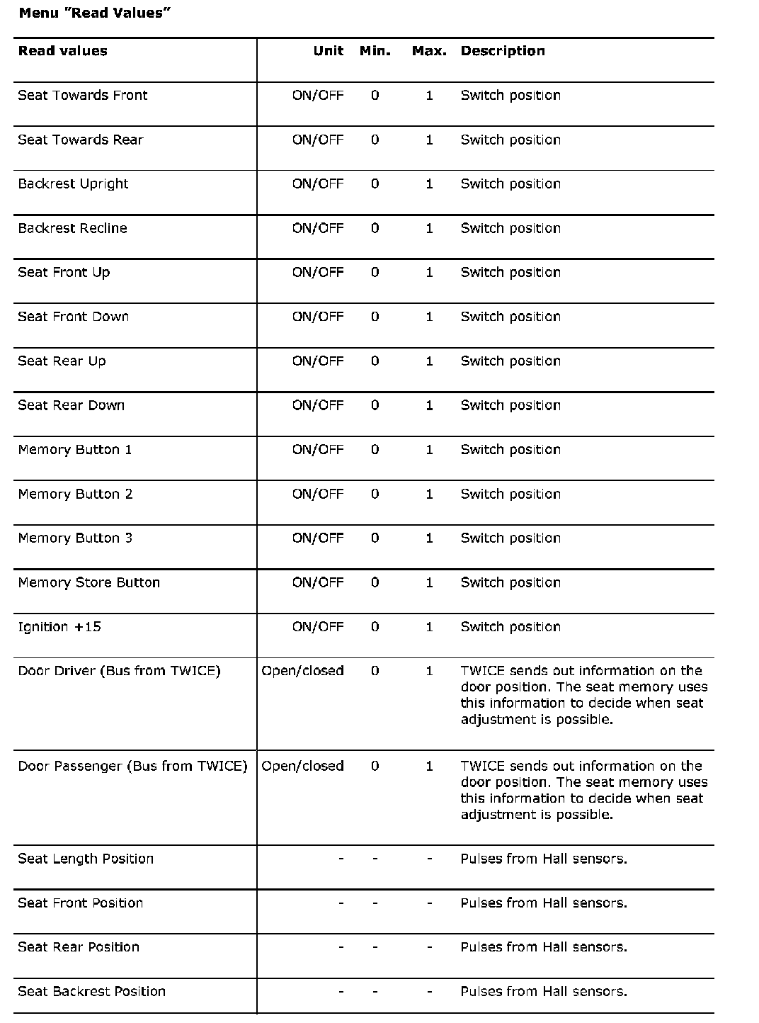 Menu "Read Values"