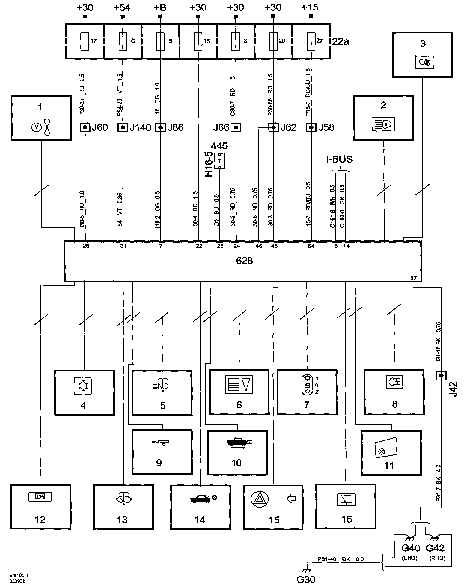 Power Supply Diagrams: The diagrams for the power supplies that may be feeding this system (+30, +15, +54, +X and +B) can be found at Power and Ground Distribution diagrams Diagrams